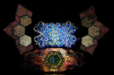 My artistic journey began with VJing, a discipline that remains my passion. For over 20 years, I have been creating visual performances that blend electronic music and video, crafting immersive and interactive experiences. Today, I also incorporate video mapping, projecting visuals onto architectural surfaces to enhance my creations.