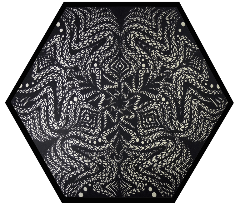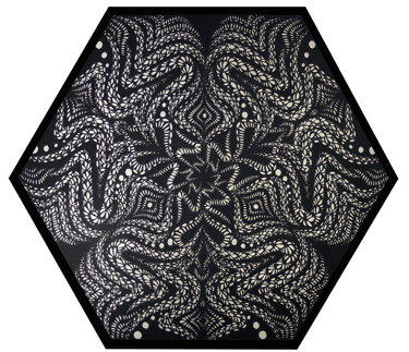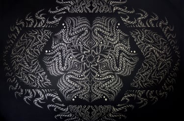 Anonymous Substances emerged from my discovery of an innovative technique for working with lycra, a stretchable material that I cut and sculpt by hand. My graphic works, organic and inspired by sacred geometry, blend plastic art and scenography. This process has allowed me to explore new visual forms while creating a connection with the audience.
