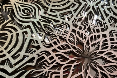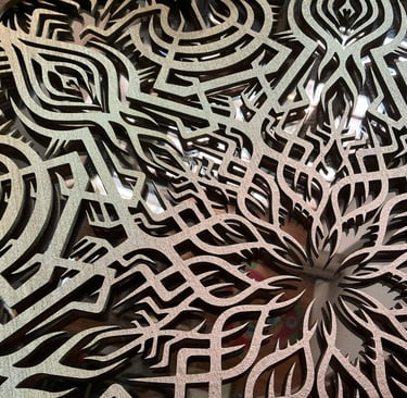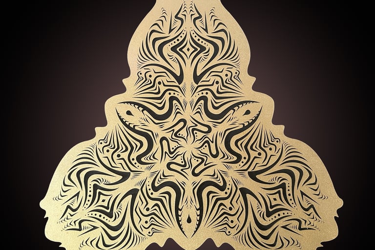 I develop patterns that I design as living forms, evolving structures. Each pattern is explored, declined, transformed. It is not a question of producing a fixed image, but of entering into a real research process.