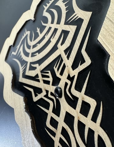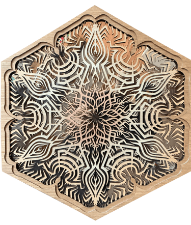 Production : Laser-cut with hand-drawn designs