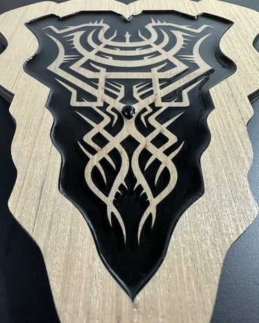 In this piece, I sought to explore the layers and depths of black through the use of iridescent paints, imbuing the composition with a dark, mystical aura.