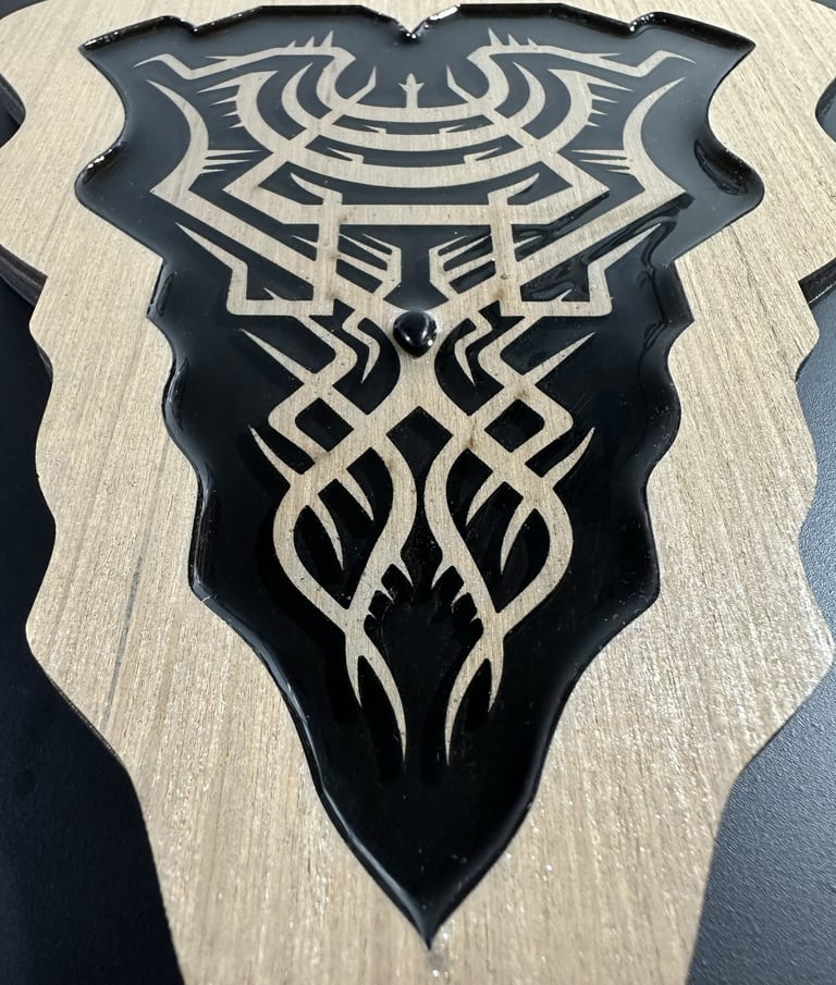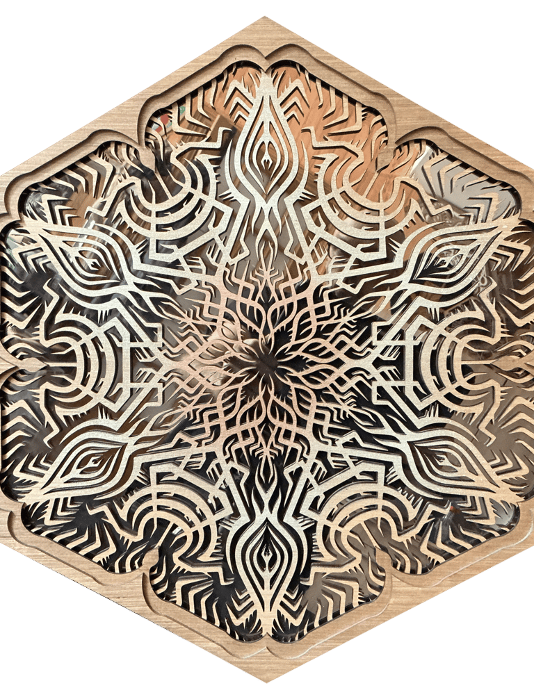 Production : Laser-cut with hand-drawn designs