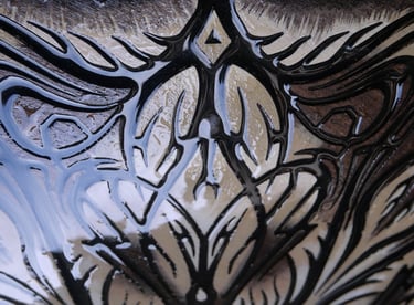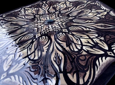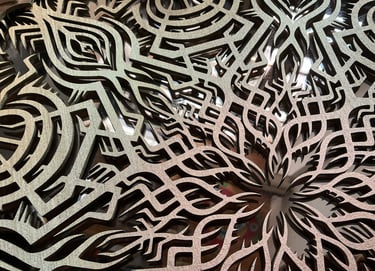 Je développe des motifs que je conçois comme des formes vivantes, des structures en évolution. Chaque motif est exploré, décliné, transformé. Il ne s’agit pas de produire une image figée, mais d’entrer dans un véritable processus de recherche.